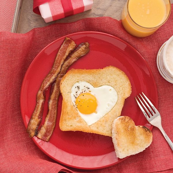 Otro modo sencillo de preparar un huevo frito o a la plancha es coger una rebanada de pan de molde y tostarla apenas de un lado. Luego con un cortante para galletas de la forma que más nos guste quitamos el corazón de la tostada, la ponemos en la sartén untada con aceite, con el lado sin tostar hacia abajo, y con cuidado echamos un huevo dentro. Cocinamos hasta que le huevo esté cocido y servimos inmediatamente.