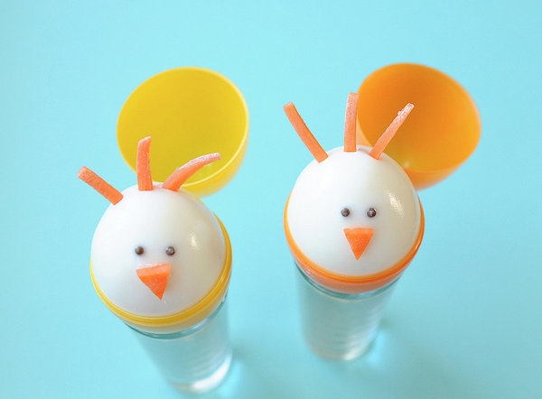 En la imagen principal podemos ver como un simple huevo duro puede convertirse en un plato muy original, presentándolo de la manera adecuada. Picos y patas cortados en zanahoria, crestas de pimiento y tomate y ojitos de semillas de lino o amapola. Luego podemos completar con un ‟paisaje de fondo” hecho con diferentes verduras. (Fuente: Meet the Dubiens)