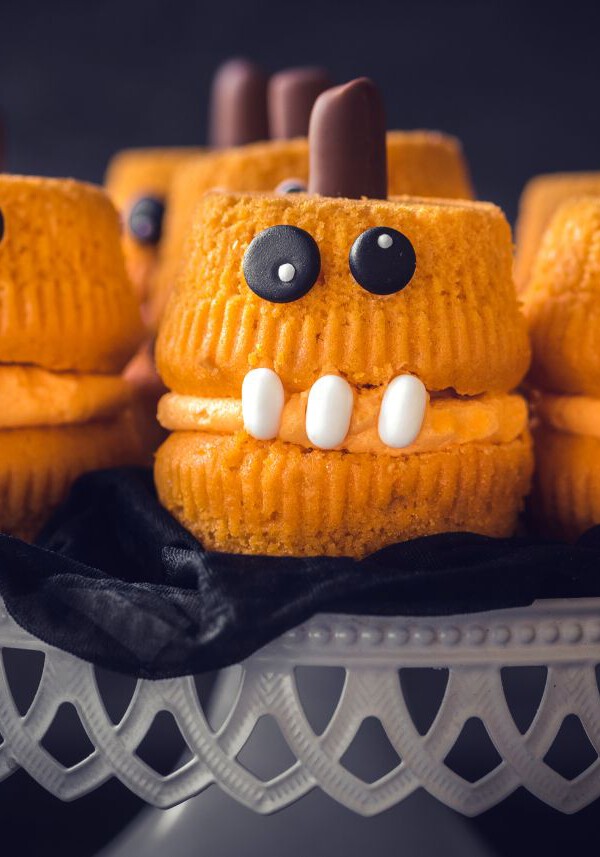 Otra idea fácil para un desayuno monstruoso son estos muffins de calabaza, para convertirlos en un desayuno de Halloween muy especial
