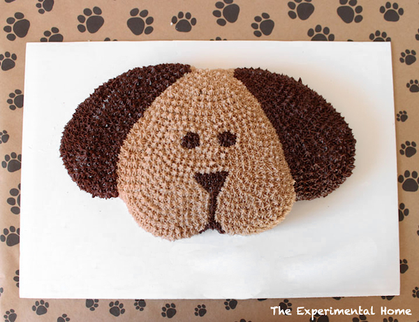Hacer este perrito es muy sencillo, sólo necesitaréis un molde para bizcochos en forma de corazón. Tenéis que hacer dos, uno será la cara y el otro, cortado a la mitad, os servirá para las orejas. Para rellenar podéis usar vuestro relleno preferido, para decorar podéis optar por una crema pastelera normal y otra de chocolate, o también buttercream teñido con colorantes alimenticios. Podéis usar la manga de pastelero con una boquilla rizada para obtener la textura que se ven en la foto, o distribuir la cobertura con una espátula.