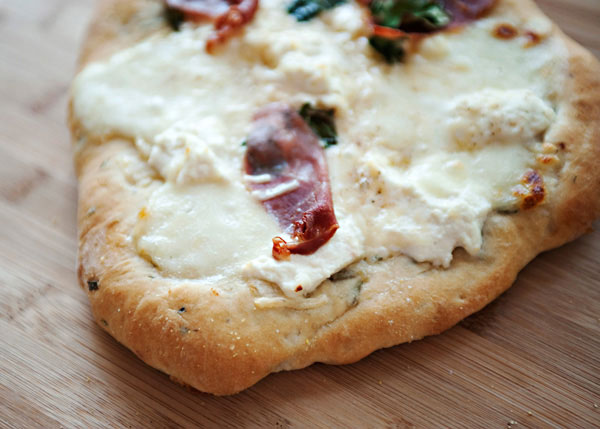 Pizza casera de pollo y pesto