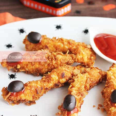 Ningún peque (al menos que nosotros conozcamos) puede resistirse a los fingers de pollo. En esta oportunidad, los hacemos en forma de dedos ¡con uñas y un poco de sangre! ¿Se animarán tus peques a probarlos?