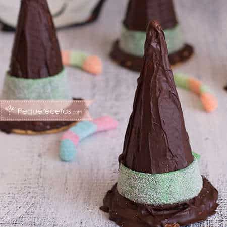 ¿Sabías que con unas galletas, unos conos de helado, chocolate fundido y chuches puedes preparar estas galletas sombrero de bruja tan simpáticas? Mira nuestro paso a paso y ¡a trabajar!