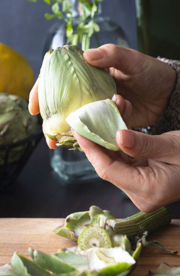 Pelamos y limpiamos las alcachofas
