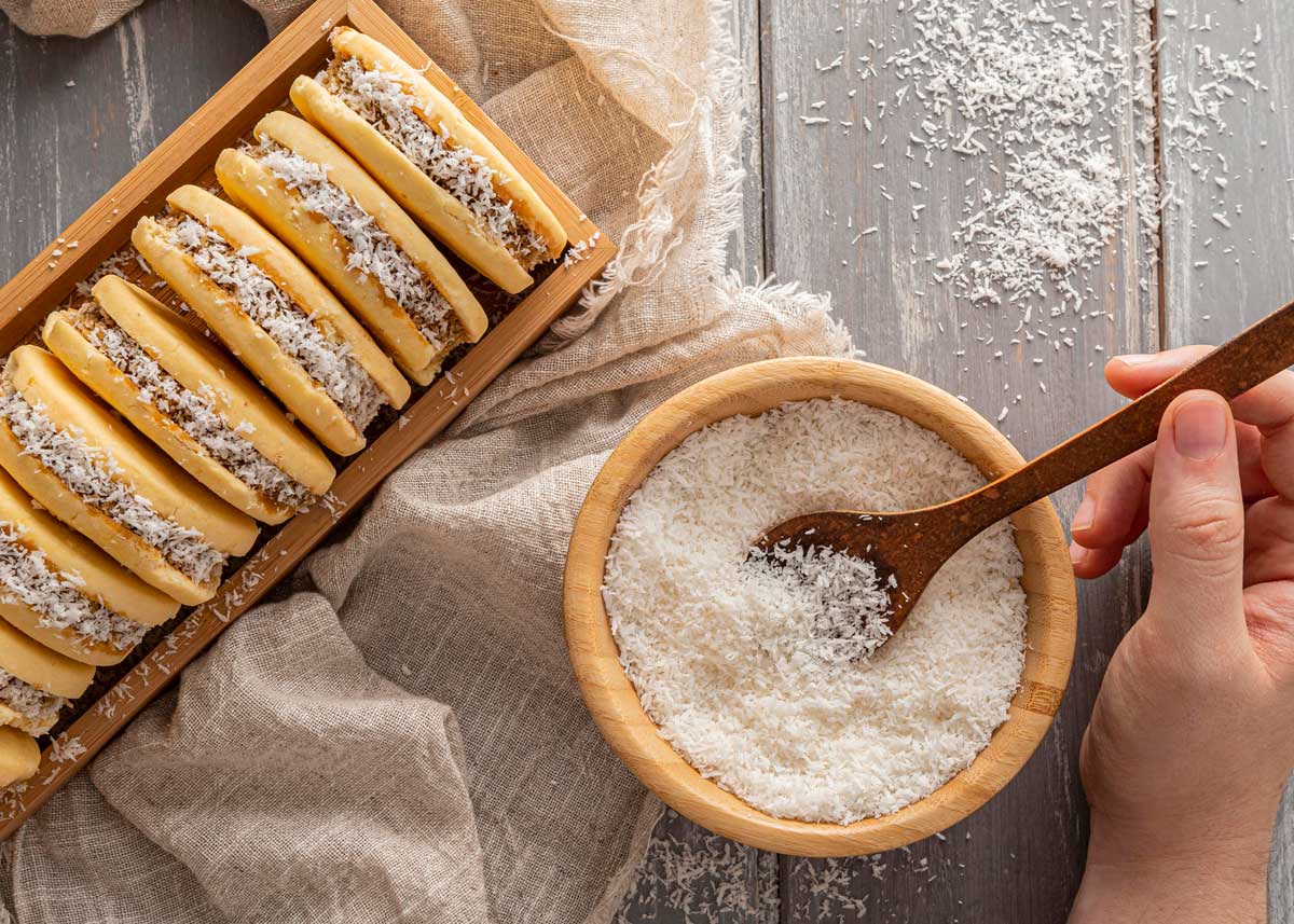 Hoy vamos a preparar alfajores, pero haremos los típicos alfajores de maicena argentinos, un dulce delicioso, con una masa delicada y friable, que se deshace en la boca, rellenos con dulce de leche y decorados con coco.