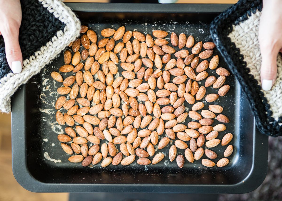 - Ponemos las almendras en una capa, sin superponerlas, y vamos removiendo a menudo para que se doren de manera uniforme.