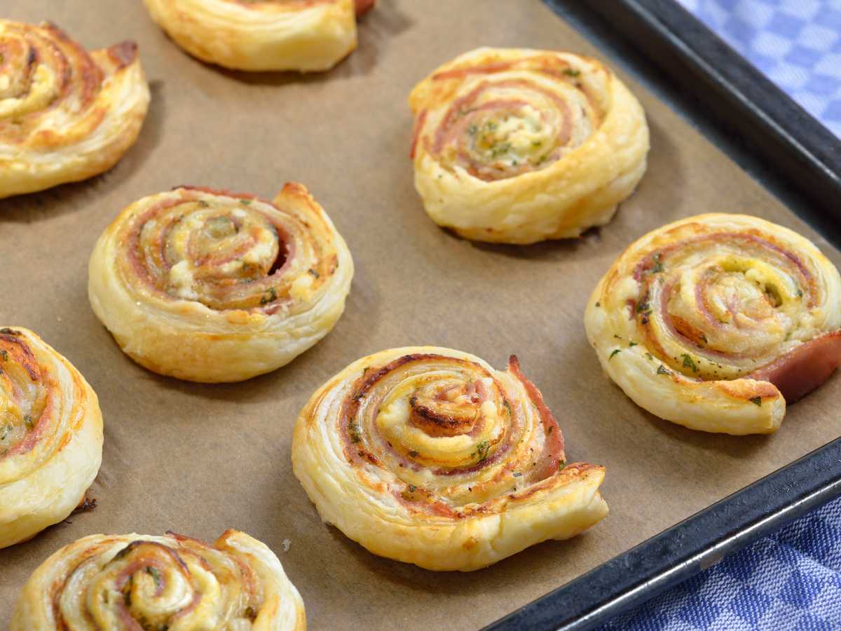 Cómo hacer rollos de hojaldre con jamón y puerro con queso