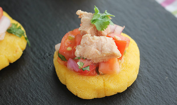 Nosotros vamos a preparar unas arepas clásicas y las vamos a servir con pico de gallo, al que incorporaremos atún.