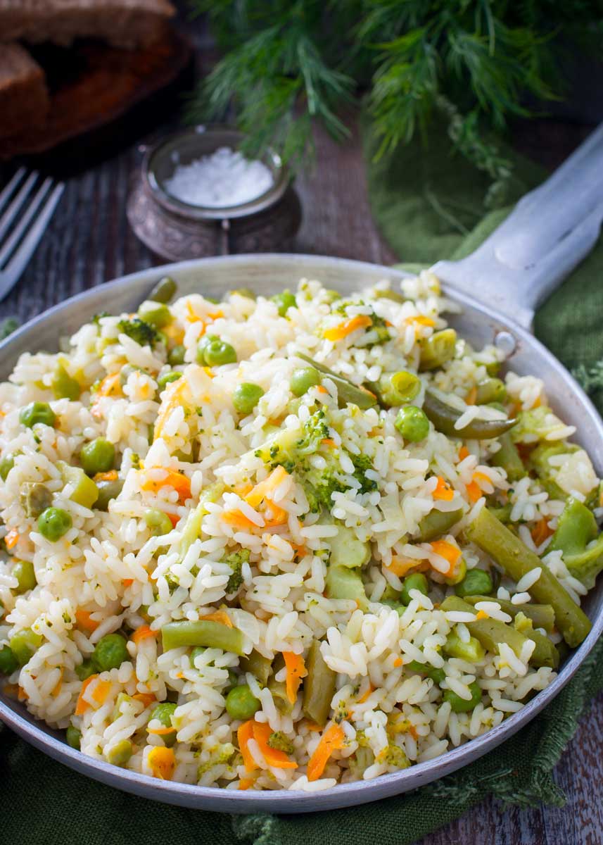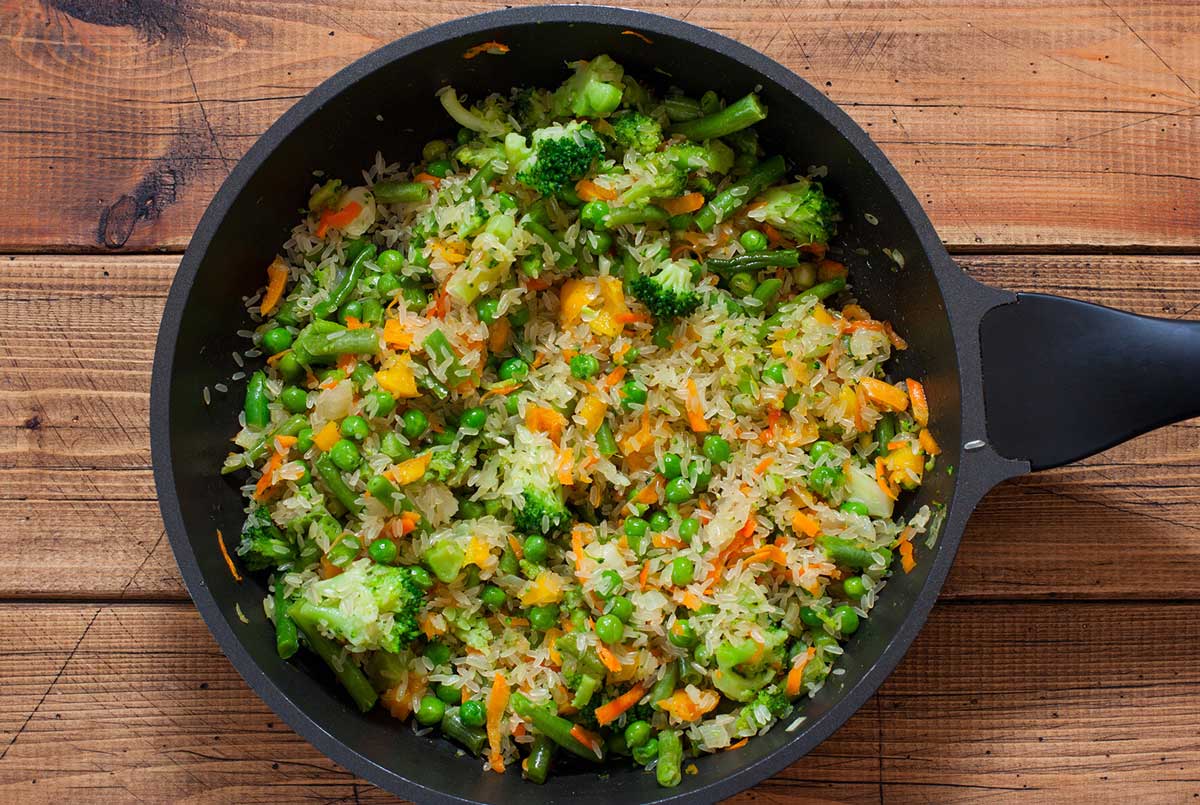 El arroz con verduras es una opción muy recomendable, donde lo más importante es el sofrito de las verduras, y también el caldo que incorpores para cocinar el arroz.