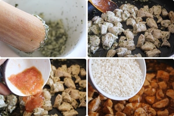 Por último incorporamos 6 tazas de agua o si tenéis, caldo de pollo, y dejamos cocinar a fuego suave unos 18 minutos. Dejamos que repose otros dos minutos ya con el fuego apagado y servimos.