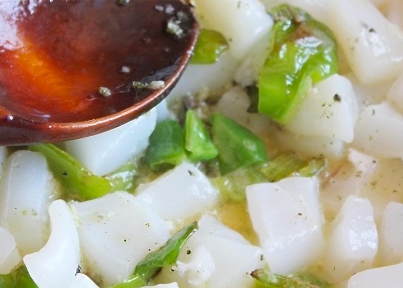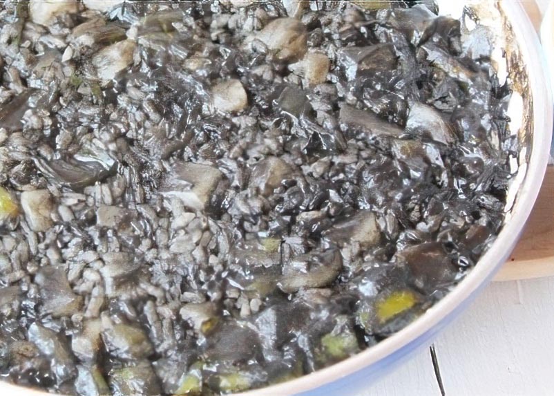 - Por cierto que antes diluía la tinta de calamar en un vasito con un poco de caldo pero ya la hecho siempre directamente congelada, de esta forma me evito manchar de tinta más cosas.