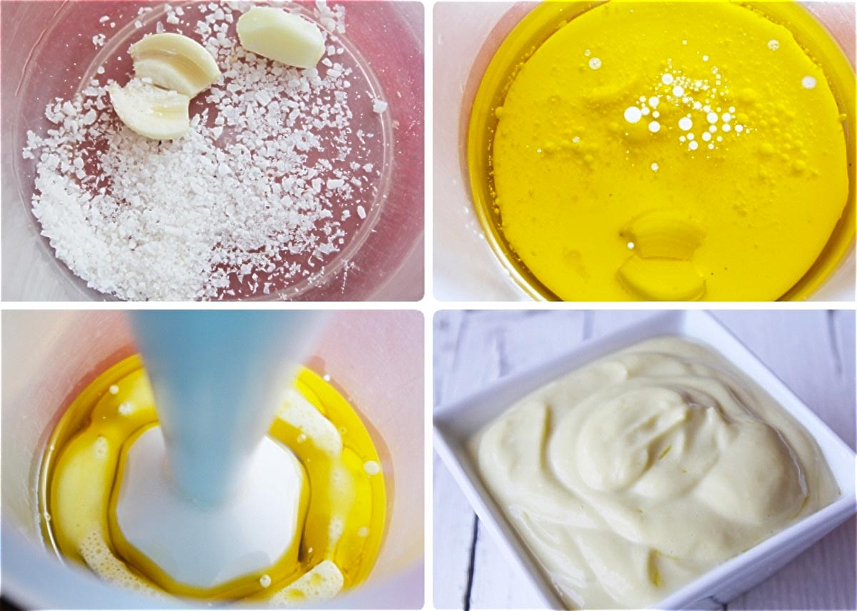 Como el arroz negro suele servirse acompañado de alioli os enseño también cómo lo preparo en casa, aunque poco tiene que ver con el auténtico alioli que se realiza sólo con ajo y aceite y mucha paciencia (abajo os dejamos un enlace por si queréis hacerlo de forma tradicional).