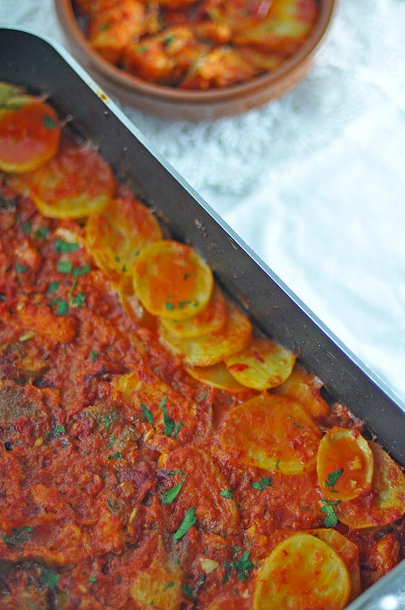 Bacalao a la Vizcaína con patatas al horno