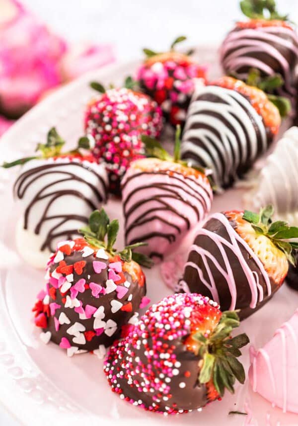 Para ello podemos derretir un poco de chocolate en el microondas, bañamos algunas fresas en el chocolate, las dejamos secar y finalmente las ensartamos en unos palitos de brocheta, y ¡listo!.