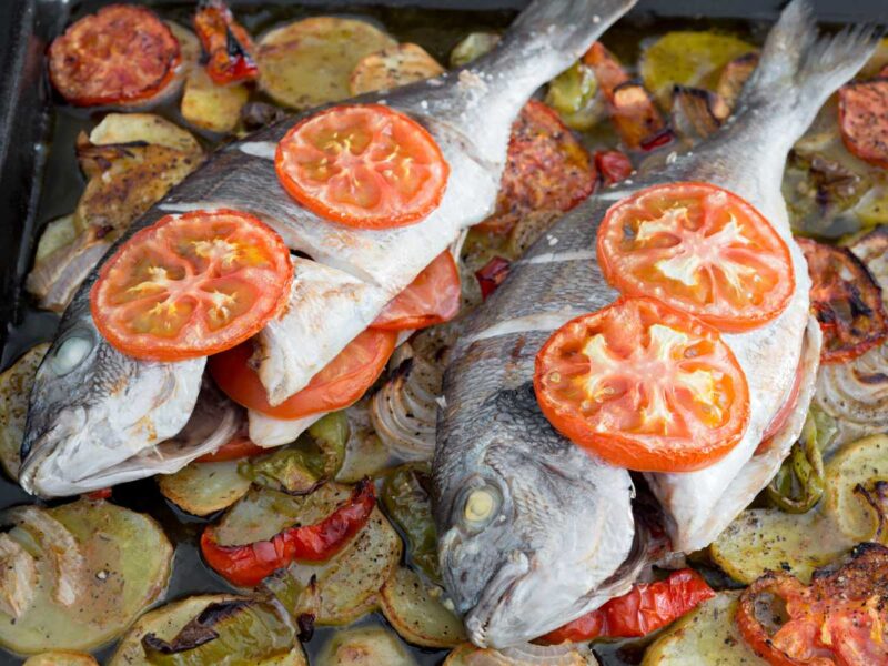 Cómo hacer besugo al horno con patatas panaderas y verduras