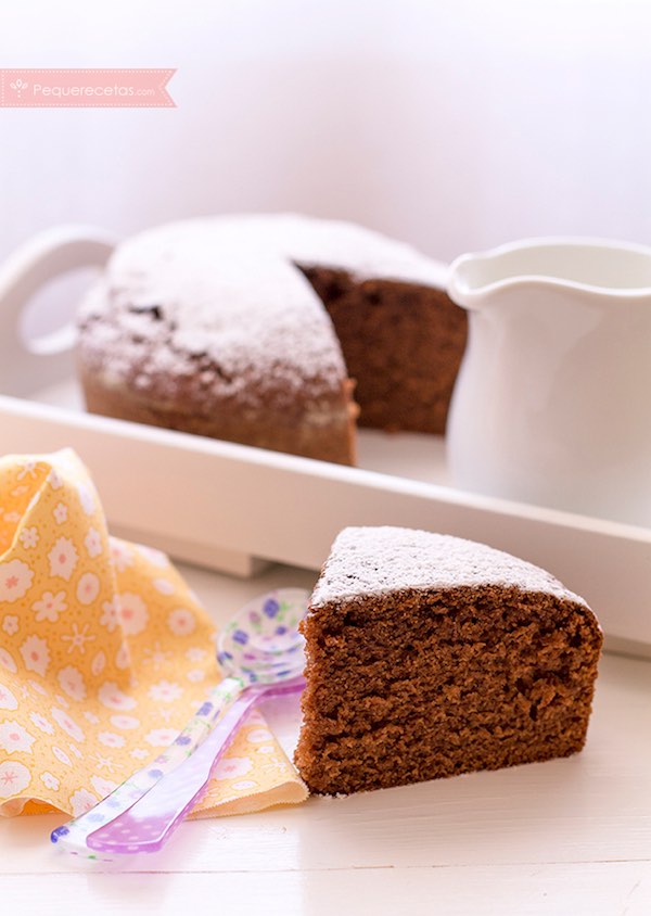 Este sencillo bizcocho de cacao es ideal para quienes no tienen siempre en casa ingredientes especiales de repostería, ya que se prepara con el cacao con azúcar de los peques, tipo Cola Cao.