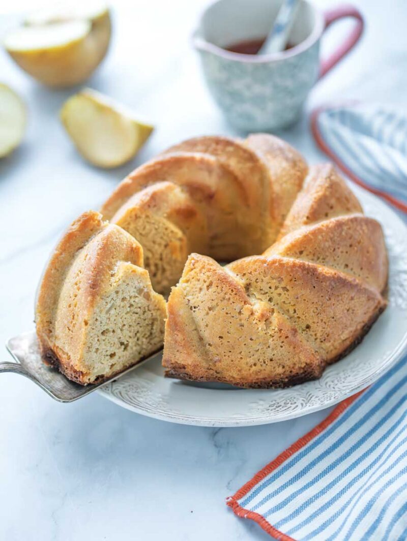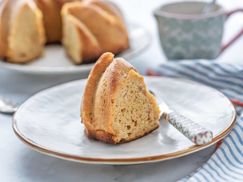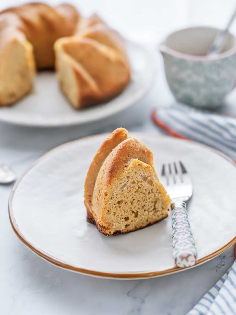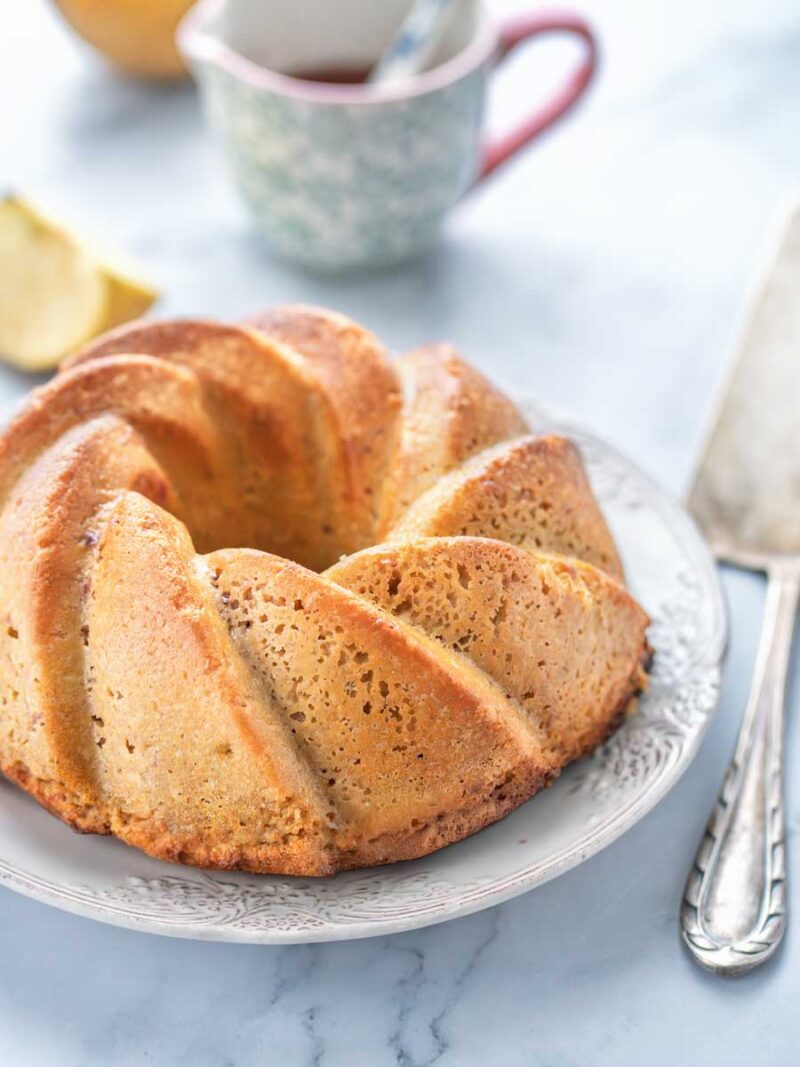 Este bizcocho de manzana es perfecto para acompañarlo con un café o un vaso de leche en el desayuno o la merienda. Si quieres darle un puntito extra puedes acompañarlo con un poco de compota de manzana por encima o un helado.