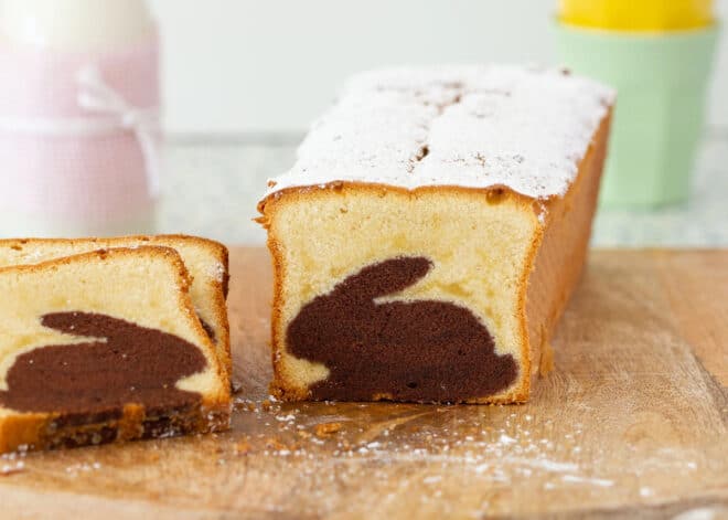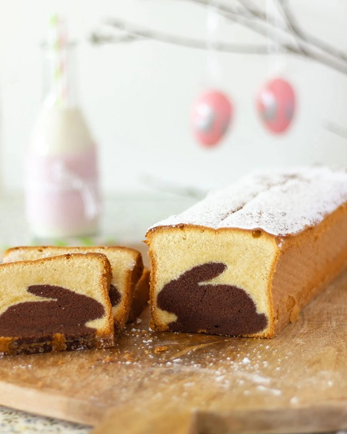 Todo lo que necesita son los ingredientes para un bizcocho de mármol, un molde para pan, un cortador de galletas de conejito y un poco de tiempo.