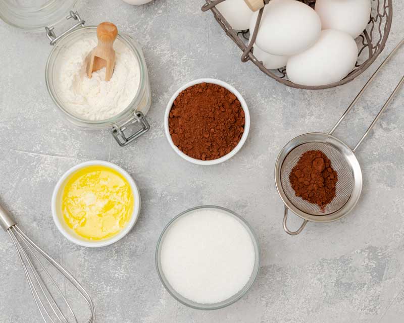- Añadir una pizca de sal, la harina, la levadura en polvo o polvo de hornear, y el cacao y mezclar bien batiéndolo.