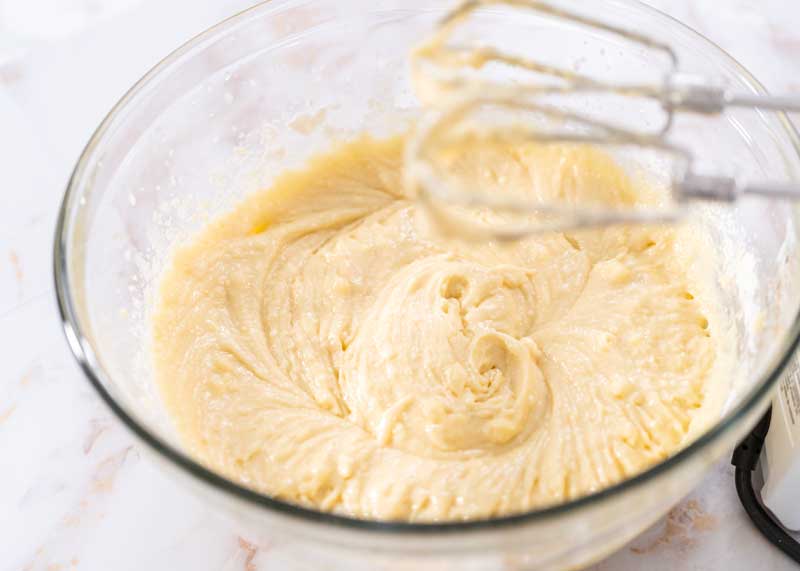 - Añadir cada huevo individualmente y batir durante aproximadamente 1 min.