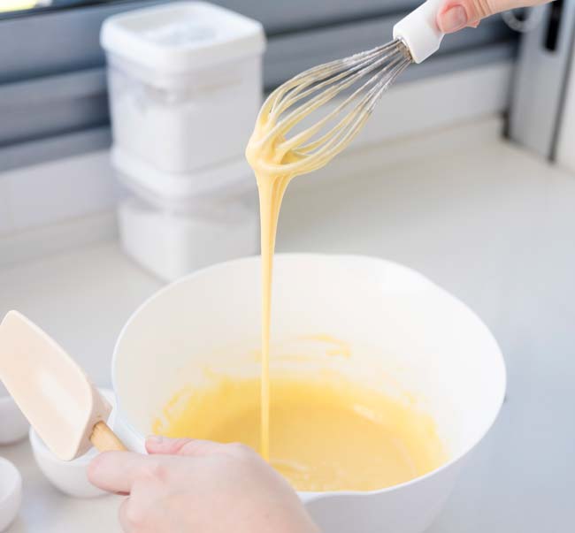 - Si quieres conseguir una masa esponjosa bate bien los huevos con el azúcar . Es mejor utilizar una batidora de varillas eléctrica (como ésta) porque introduce más aire en la masa y quedará más esponjoso.