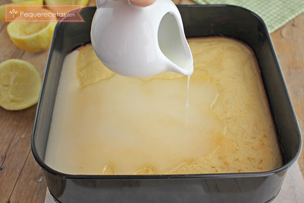 - unos minutos antes de sacarlo del horno, preparamos el glaseado, que hacemos mezclando el zumo de dos limones con azúcar glas con unas varillas o un tenedor.