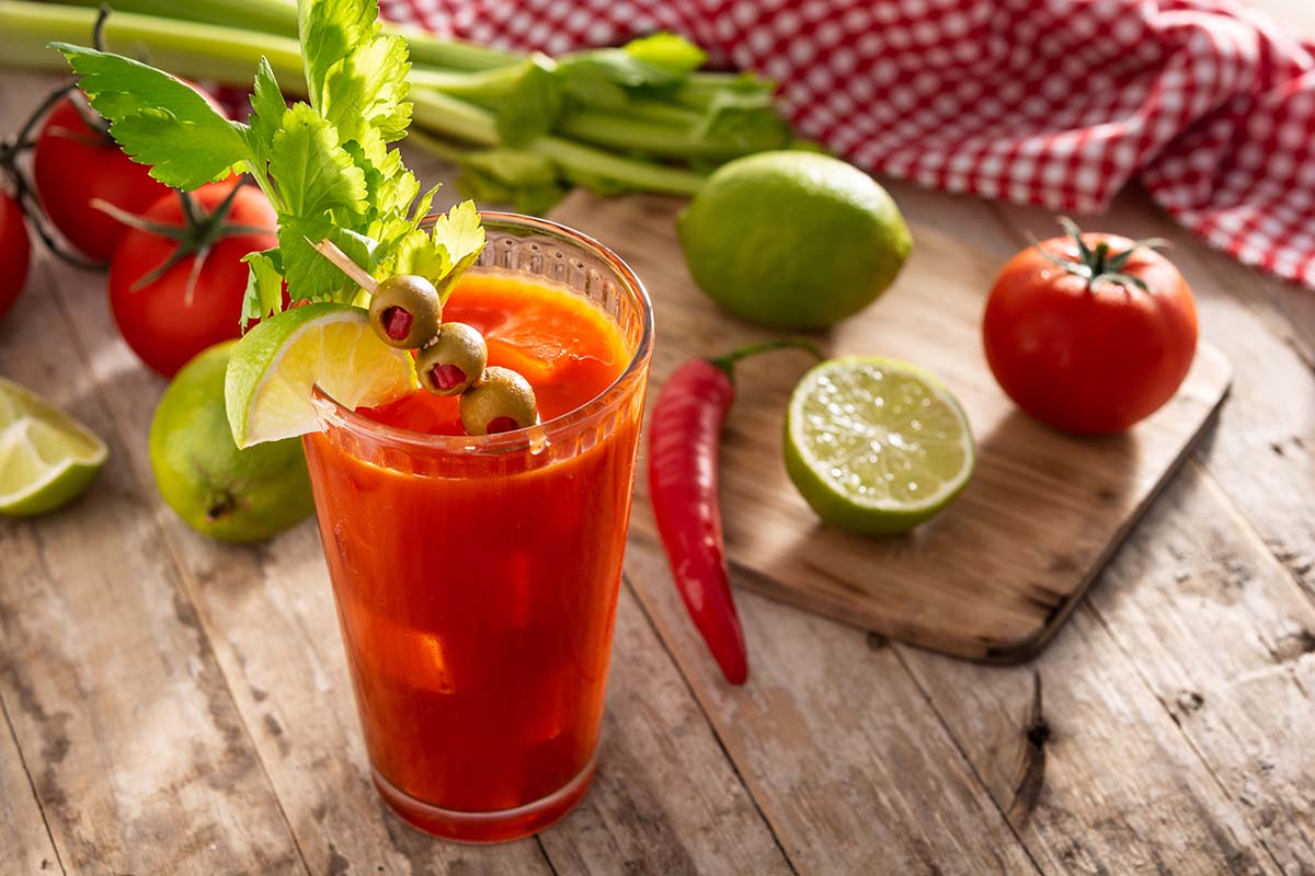 Para hacer un cóctel Bloody Mary necesitas 45 ml de vodka y 90 ml de zumo de tomate.