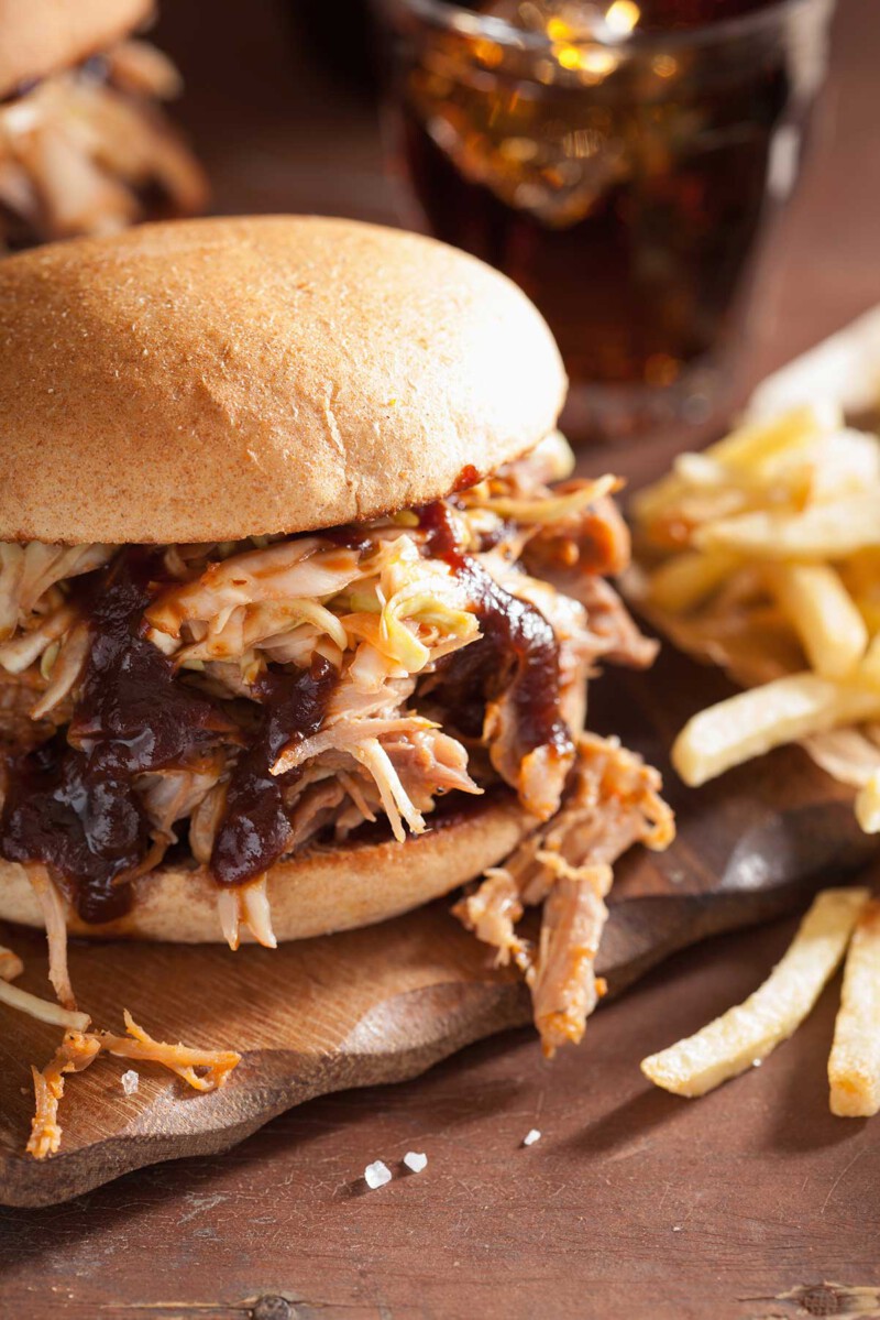 El bocadillo de Pulled Chicken o pollo desmechado es una deliciosa alternativa al clásico pulled pork. Otra opción es un bocadillo que combina la jugosidad del pollo cocido lentamente y deshilachado con la rica salsa barbacoa, creando un sabor que es tanto ahumado como dulce. Los pepinillos agregan un toque de acidez que equilibra perfectamente el plato, haciendo de ésta una opción ideal para un almuerzo o cena.