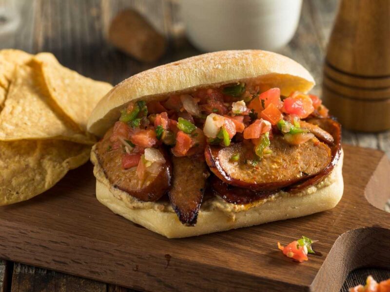 Bocadillo de chorizo mexicano con salsa Pico de Gallo