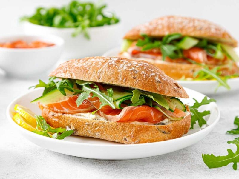 ¿Has probado alguna vez un bocadillo tan fresco y delicioso como este? El bocadillo de salmón ahumado es una opción ligera y sofisticada que combina la suavidad del salmón ahumado con la frescura del pepino y la rúcula. Es ideal para un almuerzo nutritivo o una cena ligera, ofreciendo un equilibrio perfecto entre sabor y salud.