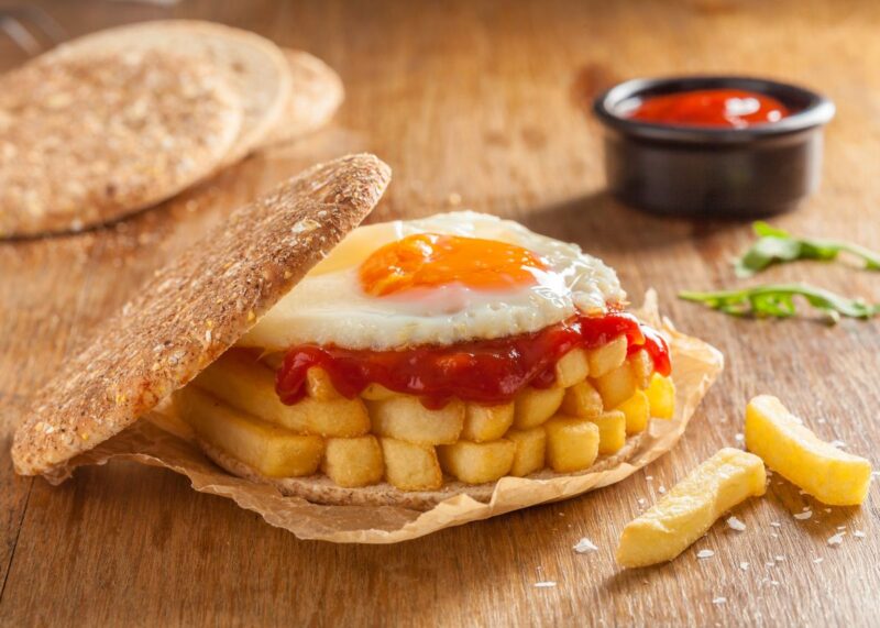 ¿Alguna vez has oído hablar del Chip Butty? Este bocadillo británico clásico es un ejemplo perfecto de comida reconfortante, con patatas fritas como ingrediente principal. En esta versión, se eleva con un huevo frito para añadir un toque extra de sabor y saciedad, convirtiéndolo en una opción irresistible para cualquier comida.