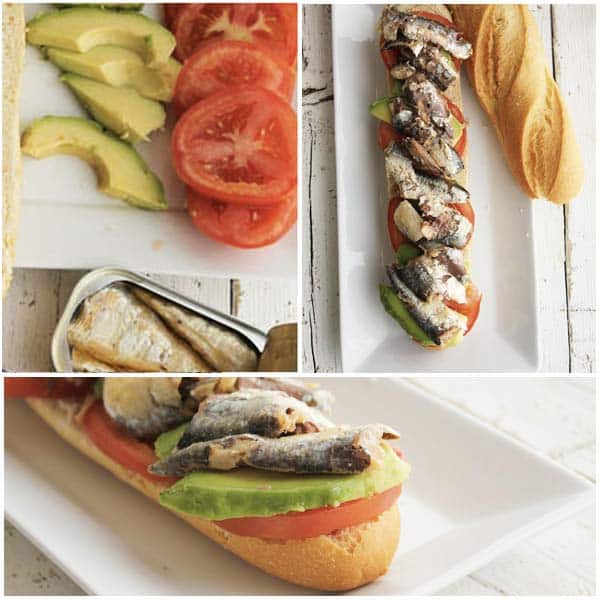Cómo hacer un bocadillo de sardinas, aguacate y tomate