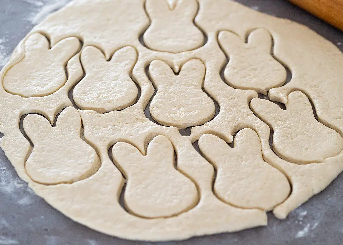 Extiende la masa hasta que tenga un grosor de 1-1,5 cm y corta los conejos con la ayuda de un cortador de conejos (nosotros hemos elegido este modelo).