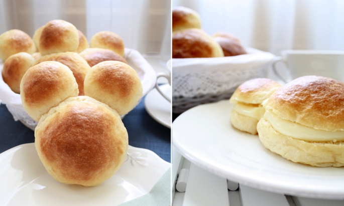 Para degustar estos bollos suizos abrimos con cuidado y rellenamos con la crema de mantequilla que hemos explicado más arriba. De esta forma los convertiríamos en los Bollos de mantequilla de Bilbao, aunque con una forma más original para los peques.