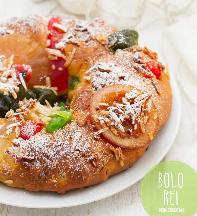 El Bolo Rei es el primo portugués de nuestro roscón de Reyes. Lo recuerda muchísimo y también se consume el 6 de enero, pero a diferencia de nuestro roscón, el bolo Rei lleva uvas pasas y frutos secos en la masa, que además se aromatiza con vino Oporto.