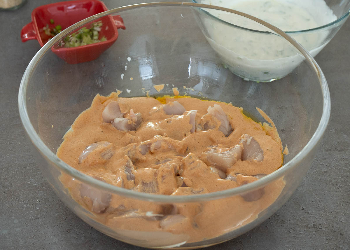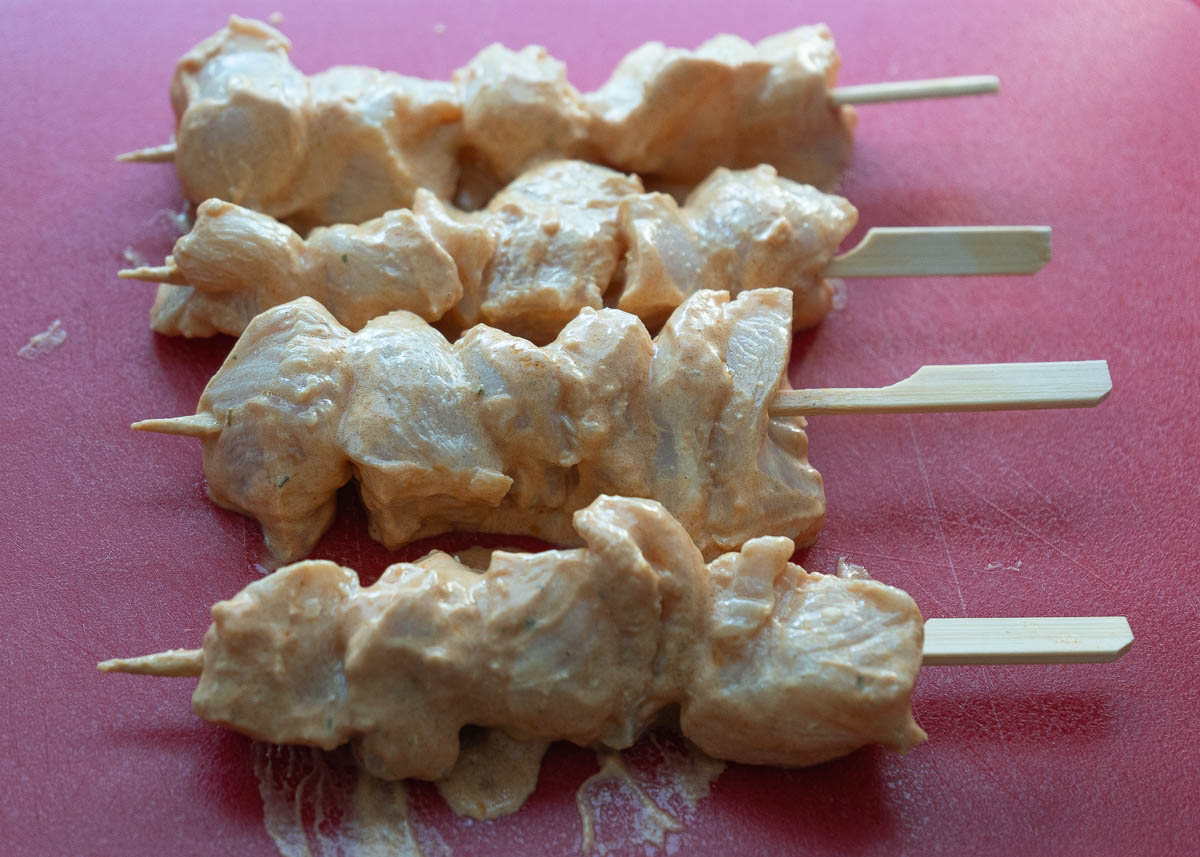 Cómo hacer brochetas de pollo marinadas con salsa de yogur