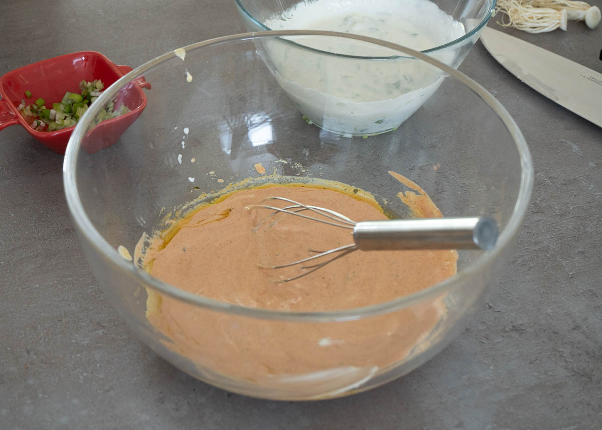 Para preparar la salsa de yogur, picamos finamente la cebolleta y mezclamos con el yogur, el zumo de lima y la albahaca muy picada. Salpimentamos y guardamos en el frigorífico hasta el momento de servir.