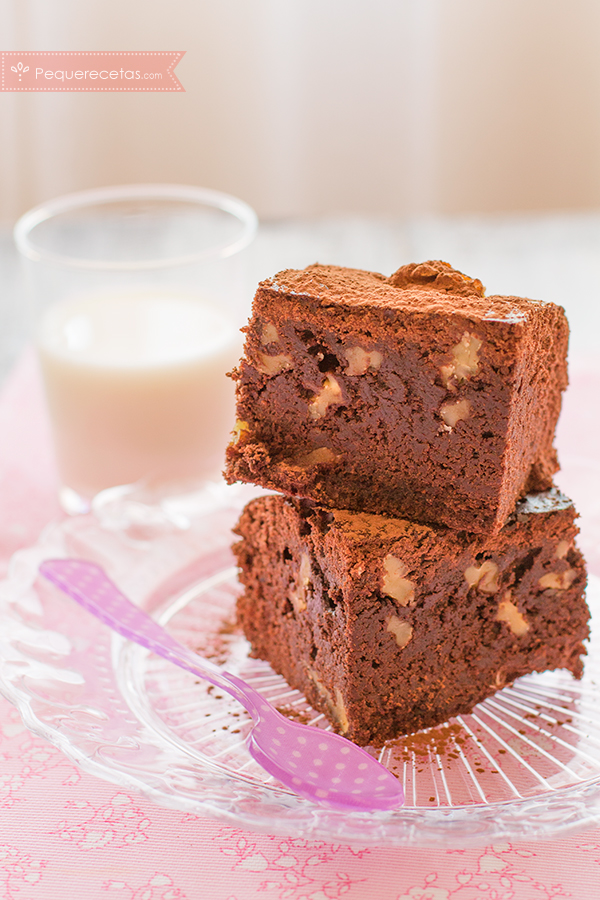 El brownie es un pastel denso, nada ligero, con un intenso sabor a chocolate simplemente delicioso. Podéis dar un trocito de brownie a los peques para desayunar o en la merienda junto un gran vaso de leche, veréis que los llenará de energía para jugar. Eso sí, tened en cuenta que debéis prepararlos sin frutos secos si los niños son pequeños.