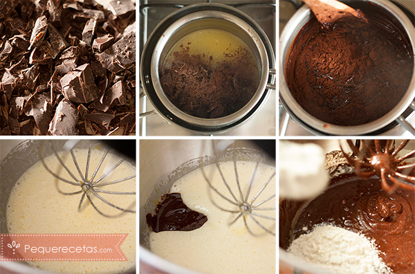 El chocolate se debe fundir junto a la mantequilla, a fuego lento y sin dejar de vigilarlo, y mucho mejor si lo hacéis al baño María.