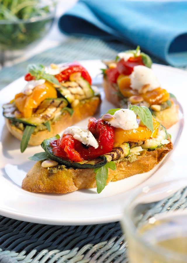 Las verduras a la plancha o asadas son ideales para servir con bruschettas. Podéis preparar diferentes verduras: calabacines y berenjenas a la plancha, pimientos asados, setas, cebollas, etc. También quedan muy bien los vegetales salteados como los champiñones al ajillo o la cebolla caramelizada. Podéis añadir un poco de queso feta, o mozzarella, un chorro de aceite de oliva, sal y pimienta, ¡y listo!