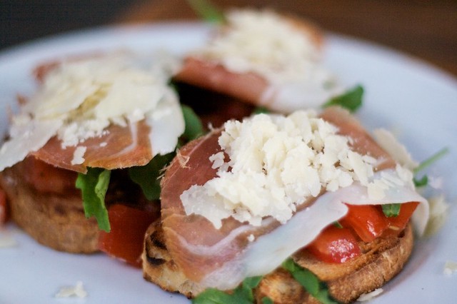 Bruschettas con jamón y parmesano