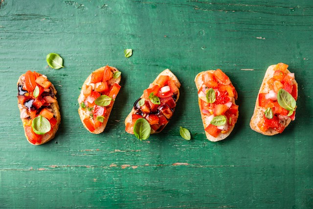 La bruschetta es el entrante o aperitivo italiano por excelencia: forma parte del menú de todos los restaurantes y no hay aperitivo donde no las sirvan. Es que tienen la ventaja de poder prepararse prácticamente con cualquier cosa: verduras, pescado, embutidos, quesos… la bruschetta italiana ¡queda bien con todo!