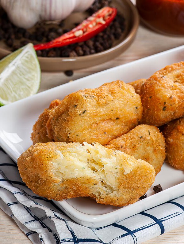 Son dorados y crujientes por fuera, mientras que por dentro son tiernos y jugosos, así que animaos a preparar esta receta con bacalao porque nadie se va a resistir a ellos. Podéis servirlos como aperitivo acompañados de alguna salsa como alioli, salsa de tomate casera, o con unos hilos de miel de caña por encima, que contrastan mucho el sabor, y a mí es como más me gustan.