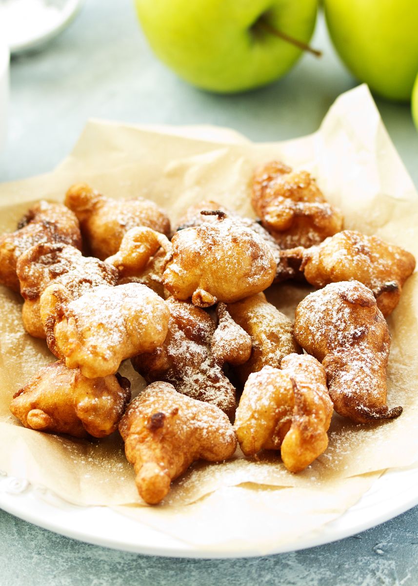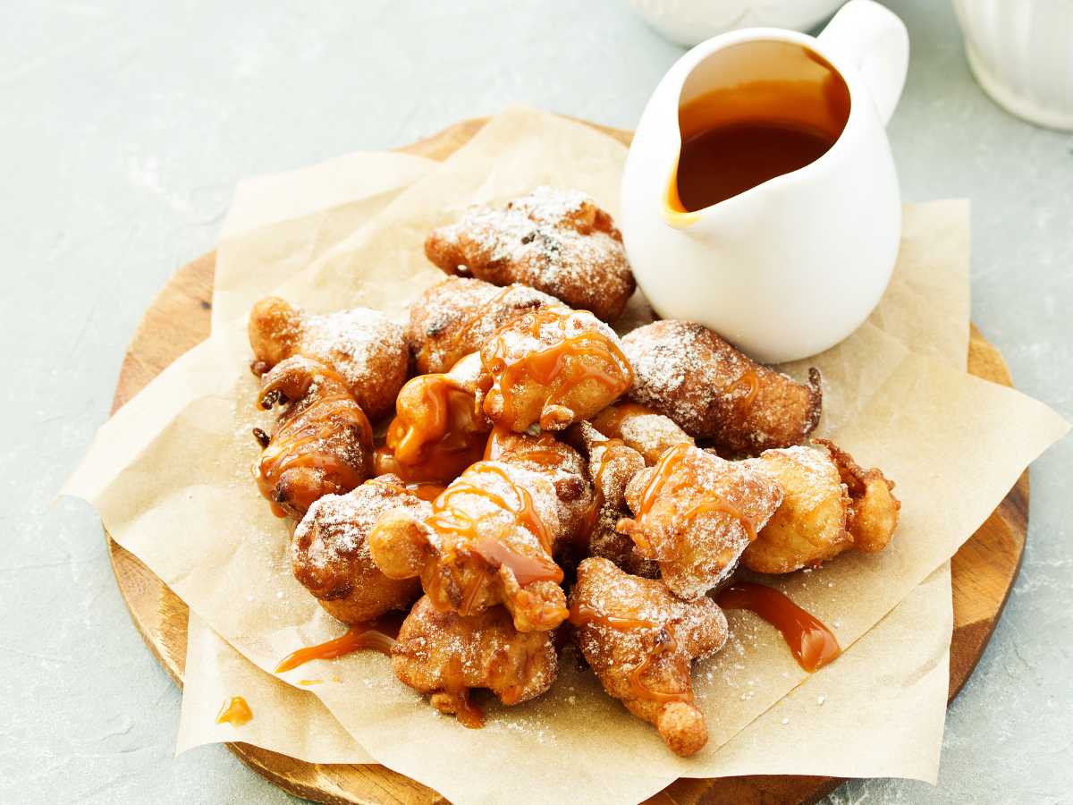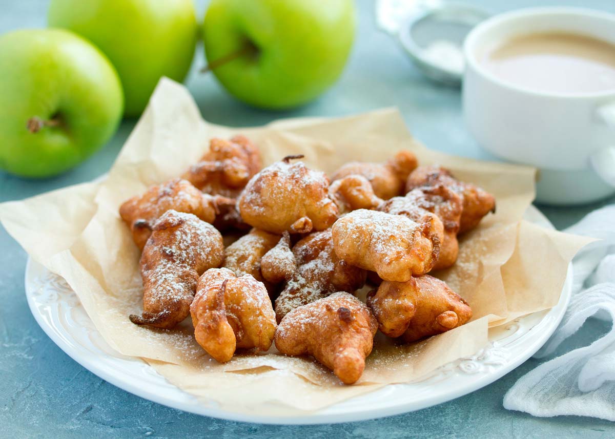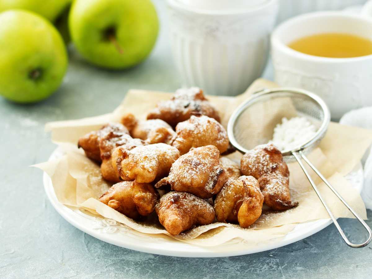 Son perfectos para la merienda con un vaso de leche o café. Puedes acompañar los buñuelos de manzana espolvoreados con azúcar glass o, si los quieres más golosos, bañados en una salsa de caramelo.