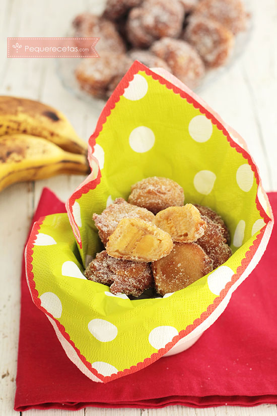 Mi hijo mayor dice que no le gustan los plátanos y se ha comido un montón de estos buñuelos de plátano… no le he dicho lo que llevaban y le han encantado, así que imaginaos si os gusta el plátano ¡no os podréis resistir!