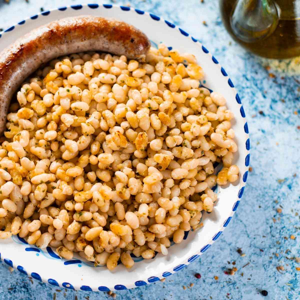 - En la sartén que hemos usado para las butifarras, aprovechando la grasa que han soltado, salteamos las alubias.
