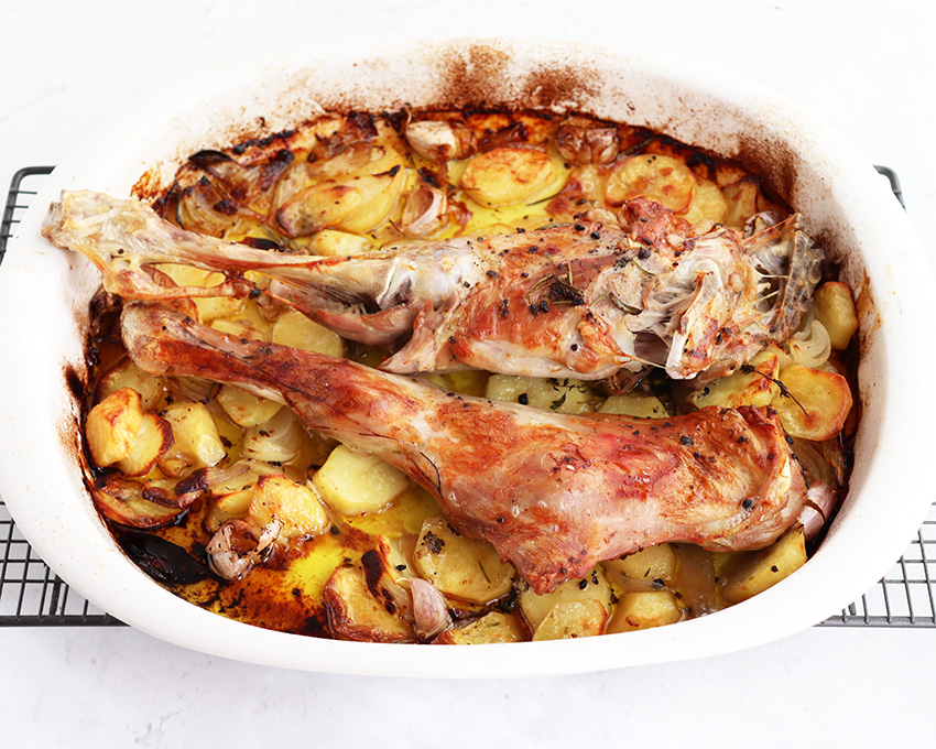 Cómo hacer cabrito asado al horno con patatas y cebolla