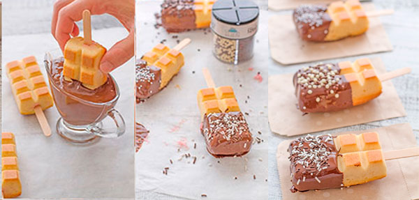 Si te ha entusiasmado la idea de hacer falsos helados de bizcocho, no te pierdas esta otra receta, porque en este caso dan el pego total, al ir cubiertos completamente de chocolate.