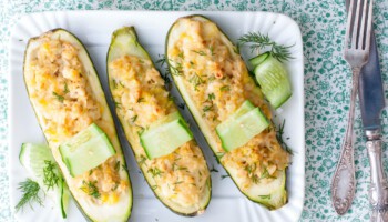 Si buscas otras recetas con calabacín y concretamente recetas de calabacines rellenos, puedes probar a hacer los calabacines al horno rellenos de pollo, los calabacines rellenos de arroz, o los calabacines rellenos de gambas.