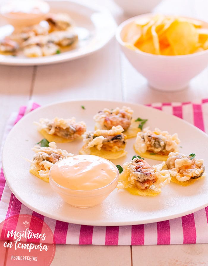 Un canapé extraordinario con el mínimo esfuerzo, porque usaremos unos mejillones en escabeche fritos en una tempura sencilla. Los vamos a servir sobre una patata chip, acompañados con una mayonesa de mejillones, ¡para chuparse los dedos!